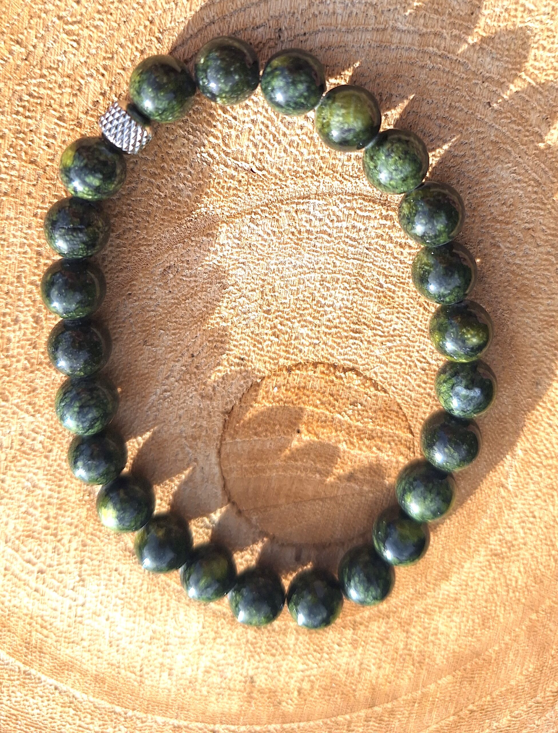 Le bracelet en Serpentine diffuse tout au long de la journée une énergie bienveillante, protectrice et équilibrante. Il soutient la prise de décision, renforce la confiance en soi et favorise la responsabilité personnelle. Enfin, pierre d’ancrage et de sagesse, la Serpentine invite à avancer avec assurance et sérénité sur son propre chemin.
