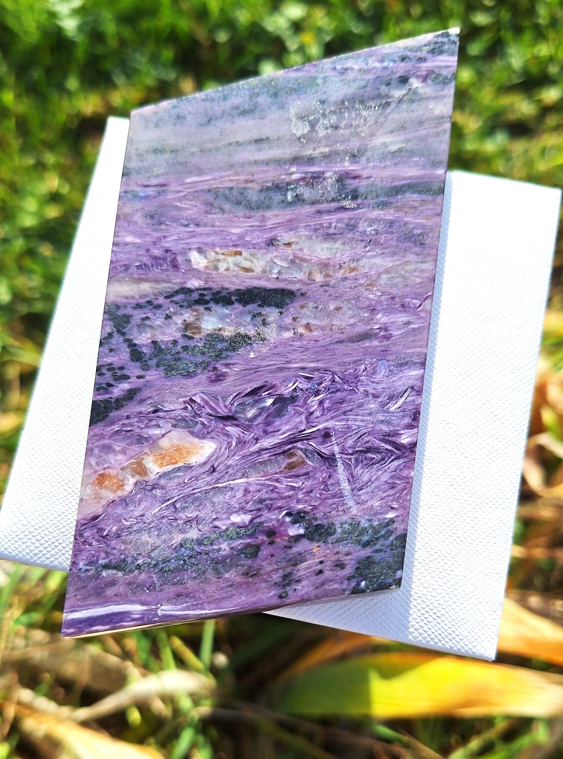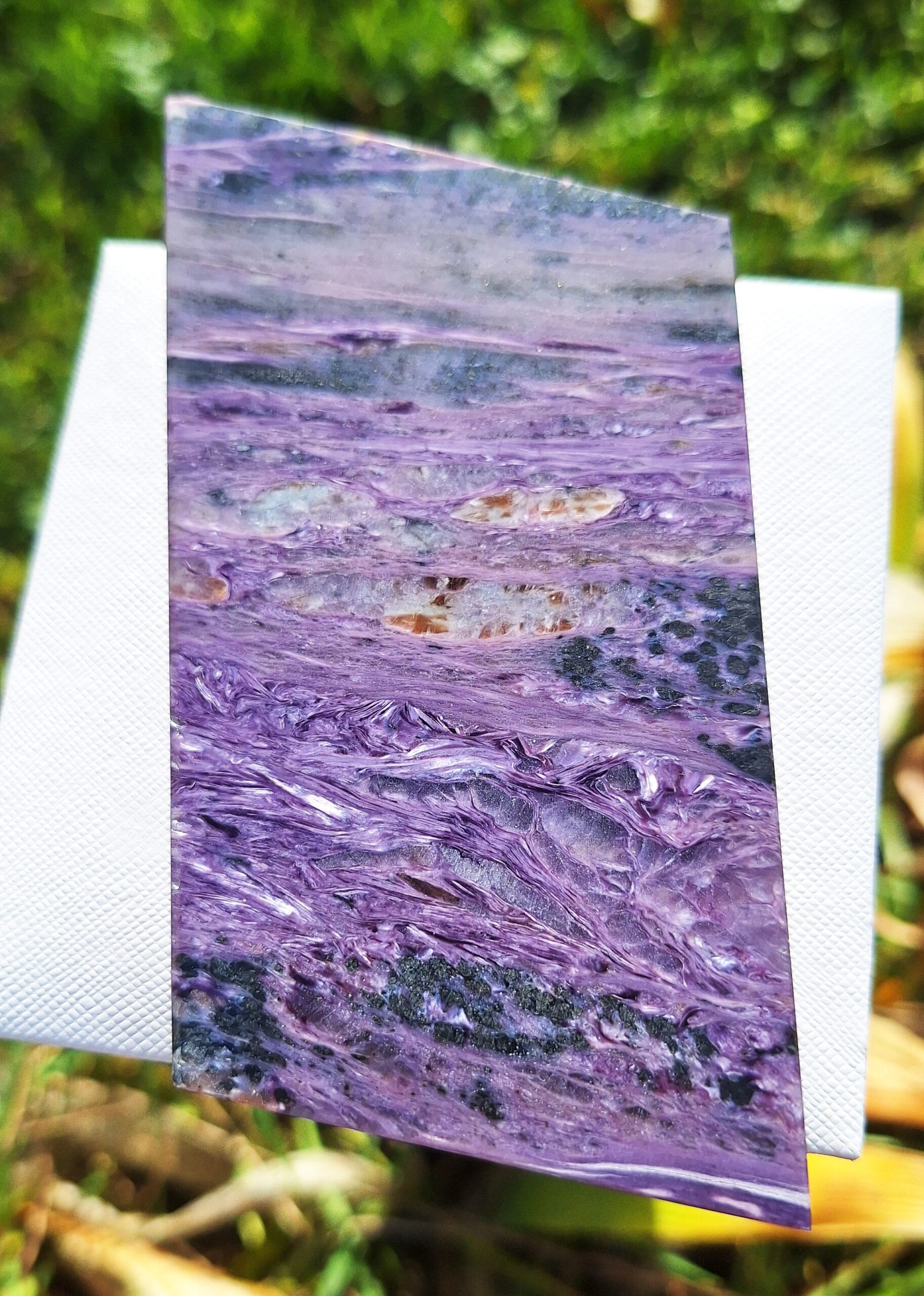 La Charoite est une pierre exceptionnelle, reconnaissable à ses reflets violets intenses et à ses volutes uniques. Sous forme de plaque, elle diffuse une énergie douce mais puissante, idéale pour harmoniser l’esprit, purifier les émotions et soutenir la transformation intérieure. Elle agit en profondeur pour clarifier les pensées, renforcer l’intuition et ramener un calme durable.